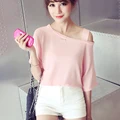 The new summer 2016 big yards sexy personality inclined shoulder sling, clothes loose sweet short sleeve T-shirtUSD 6.45/piece