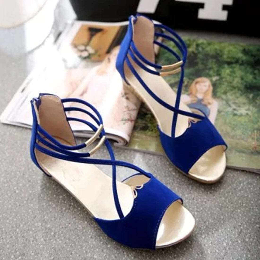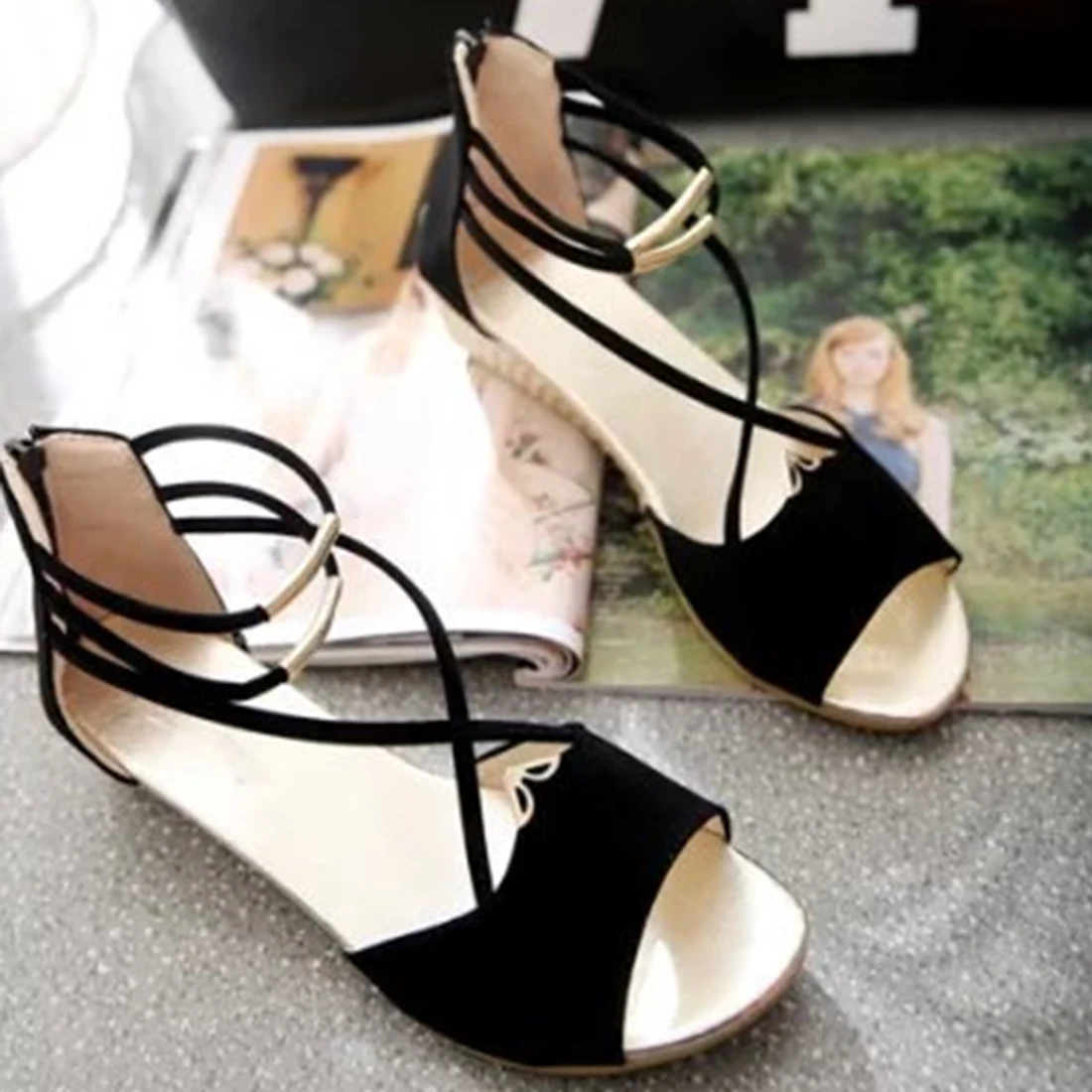 July 24, 2017Women Gladiator Sandals Shoes Thong Ankle Strap Flat X Strap Strappy Open Toe