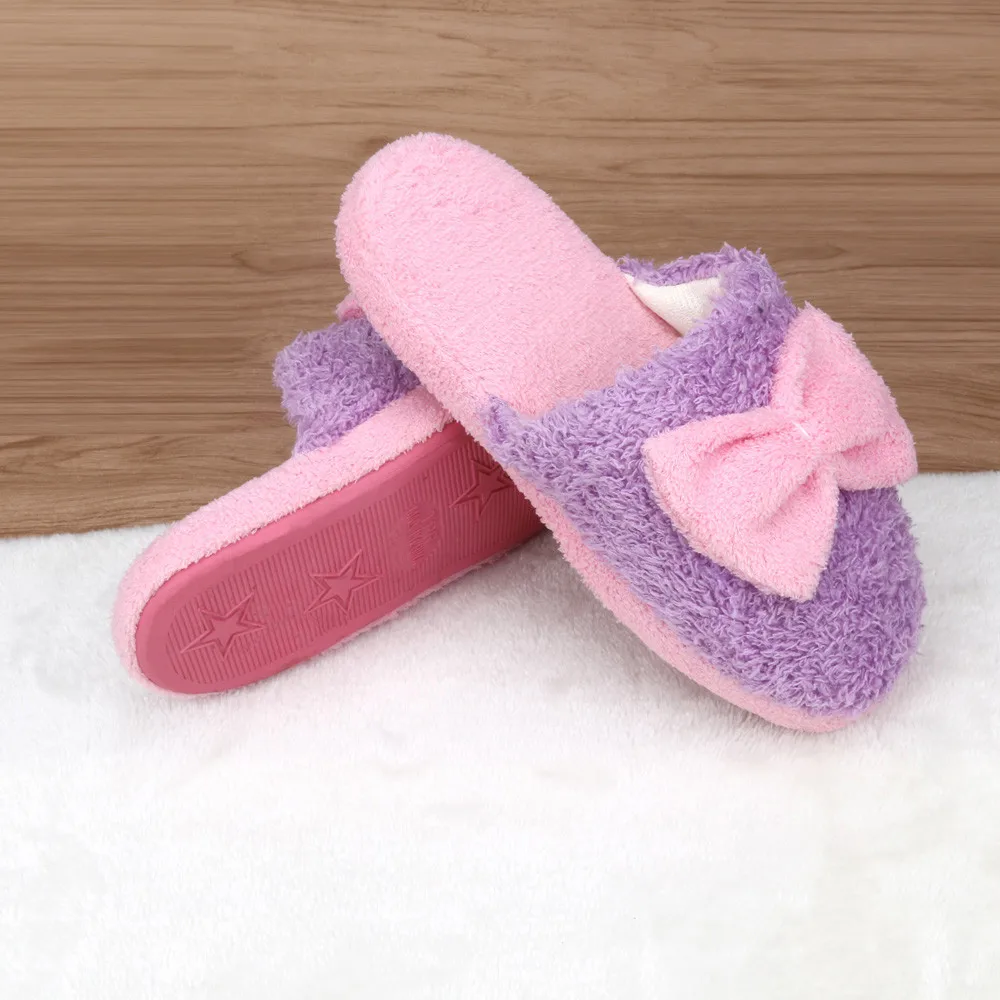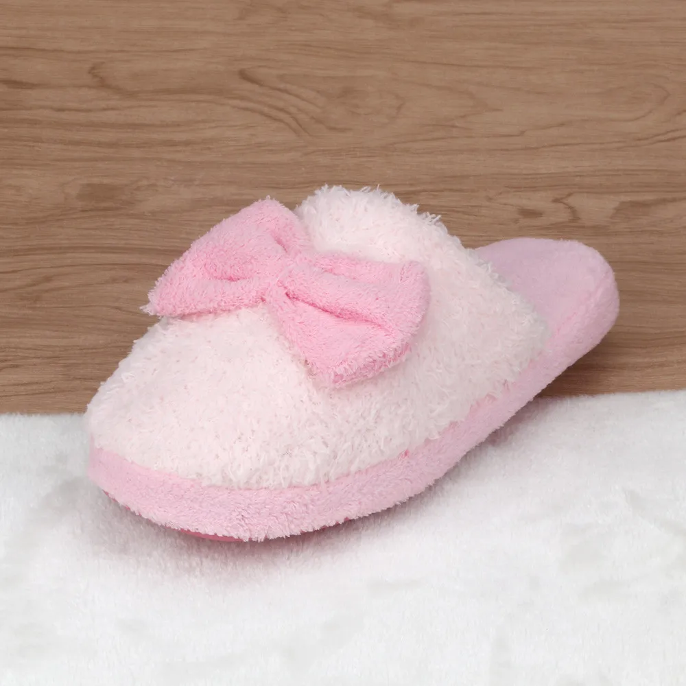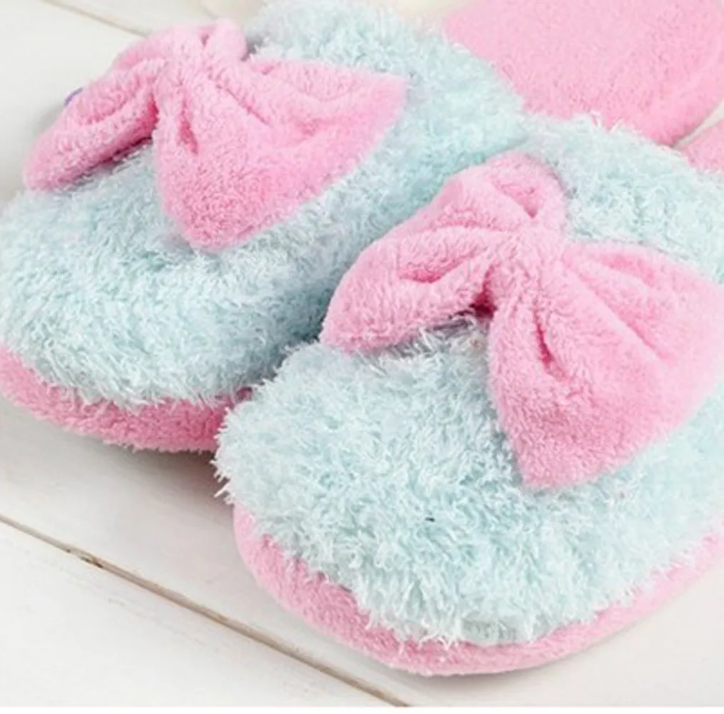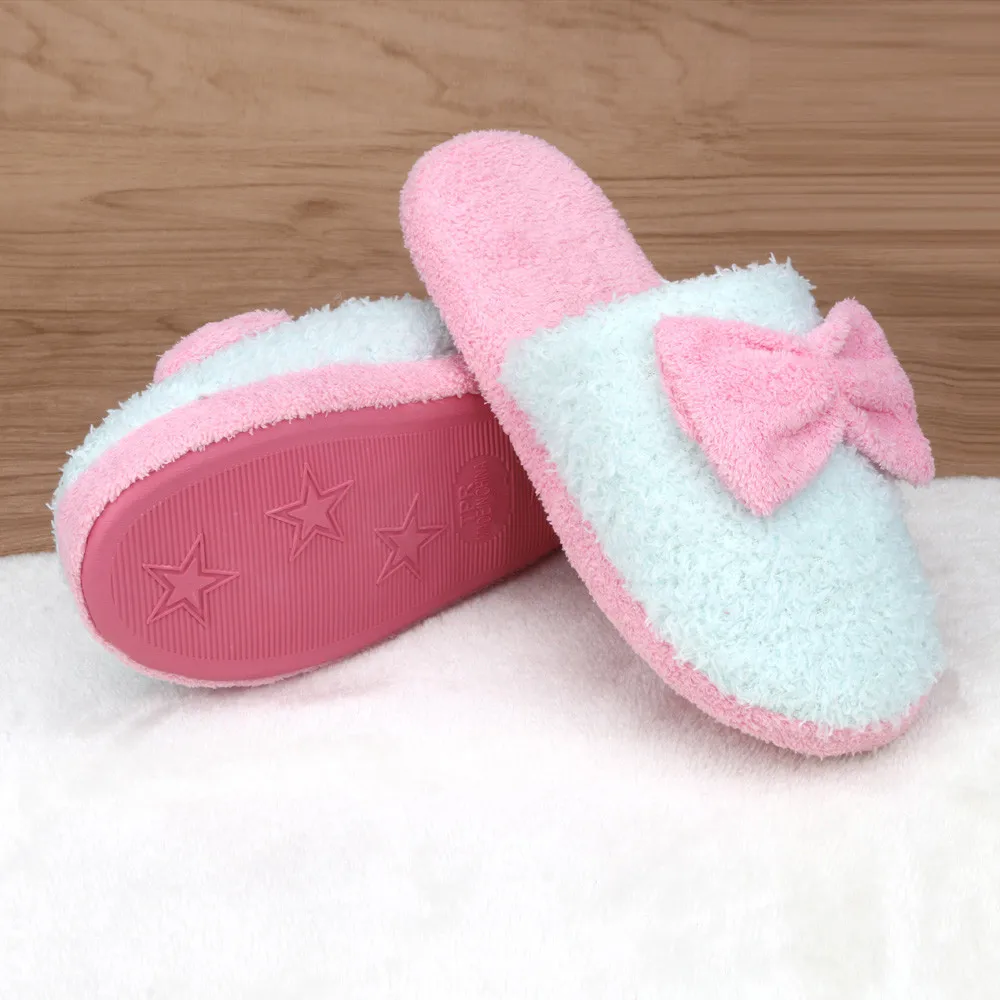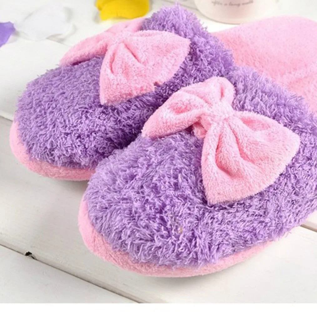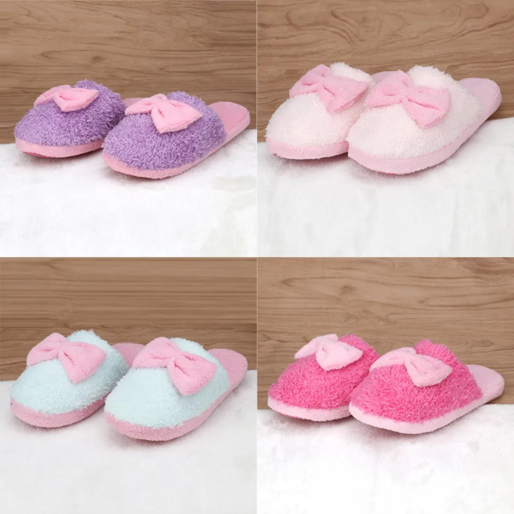 women Indoor Home Slippers summer Casual Coral Velvet shoes Bow Decorated plaform flip flops Anti-slip Shoes