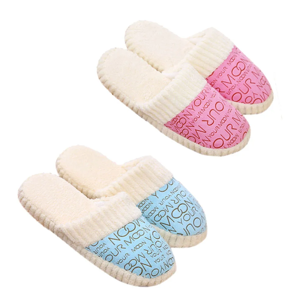 July 24, 2017Women Slippers Ladies Home Floor Soft Slippers Female Cotton-padded Flats Plush Letter printing Shoes 2017 Fashion Blue and Pink