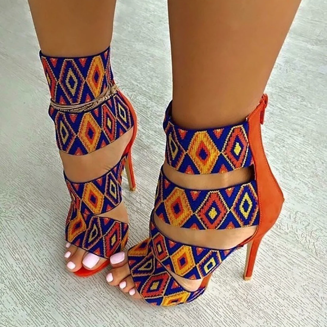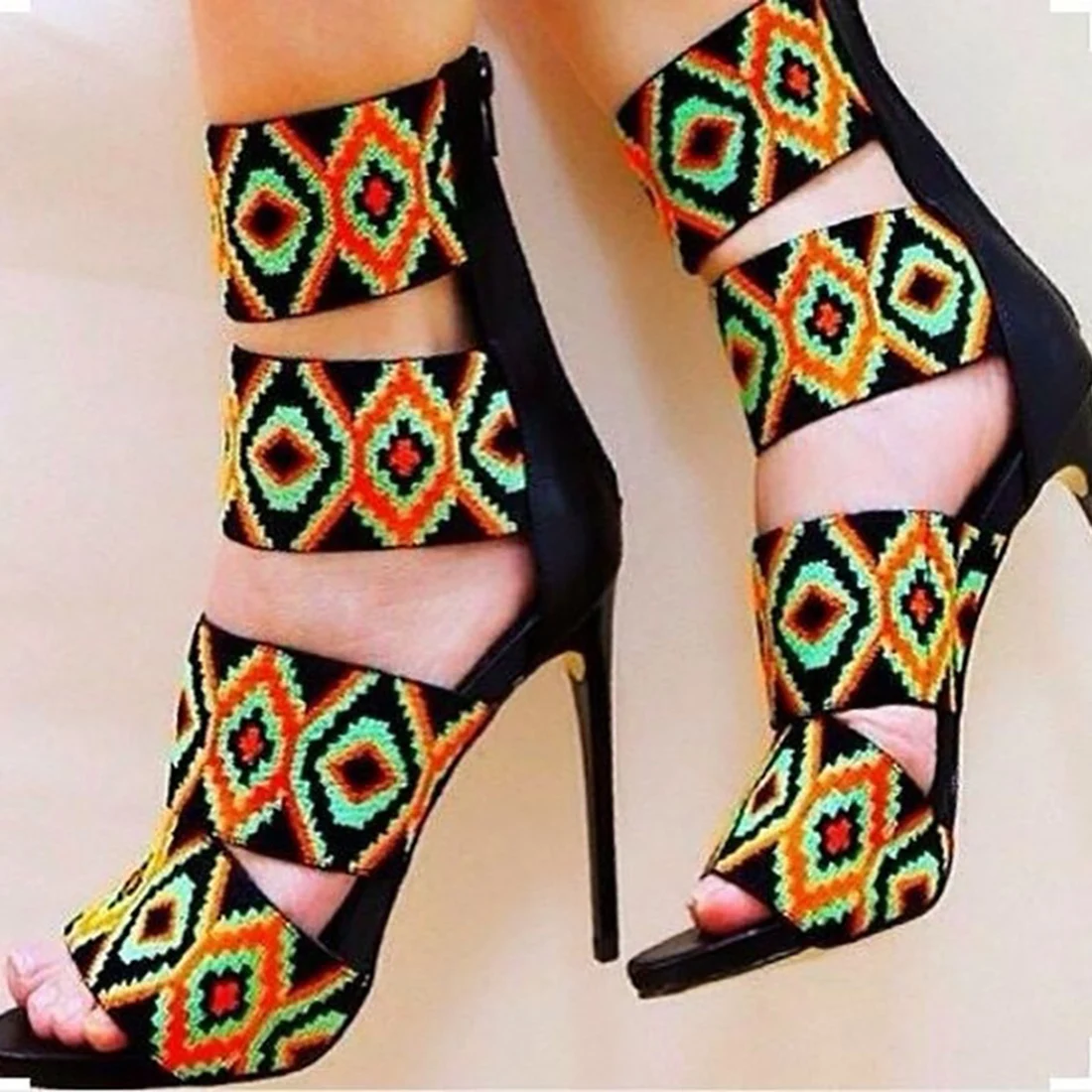 Women Sexy High Heels Open Toe Strappy Stilettos Pump Sandal Boots Shoes Print